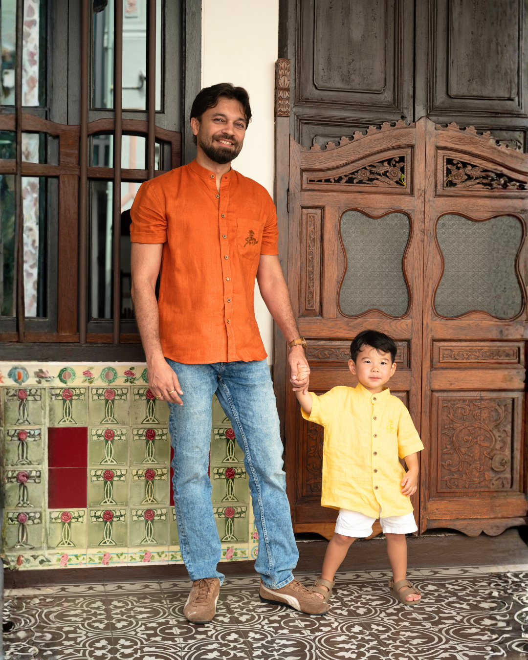 Crafted from 100% breathable linen, this shirt offers lightweight comfort while maintaining a refined, structured look. Presented in a bold orange hue symbolising joy, strength, and prosperity, it features a symbolic horse embroidery on the chest pocket, representing success, determination, and forward movement. Perfect for festive gatherings, family celebrations, and elevated everyday wear.
