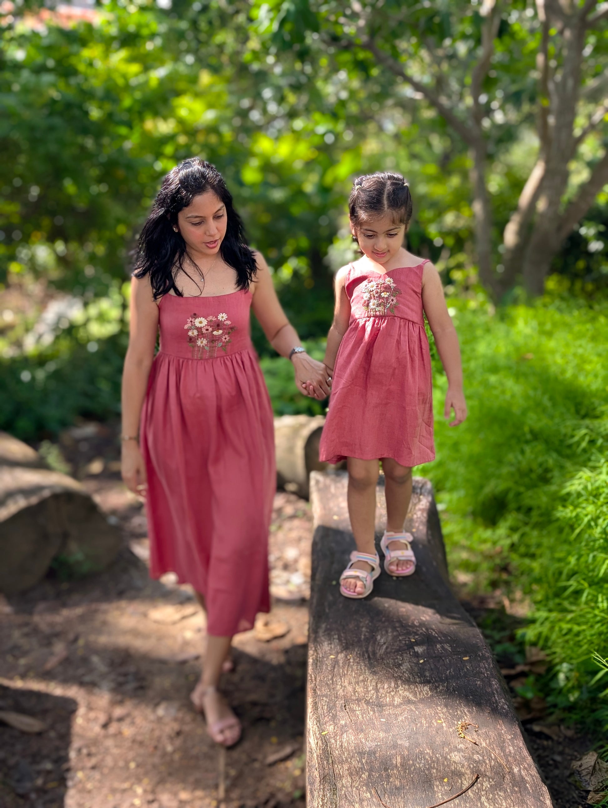 Elevate your twinning game with our Salmon Floral Dreams dress. This stunning dress features intricate floral embroidery at the center and an elastic back for a perfect fit and comfort. It's the ideal choice for creating standout looks and unforgettable matching moments.