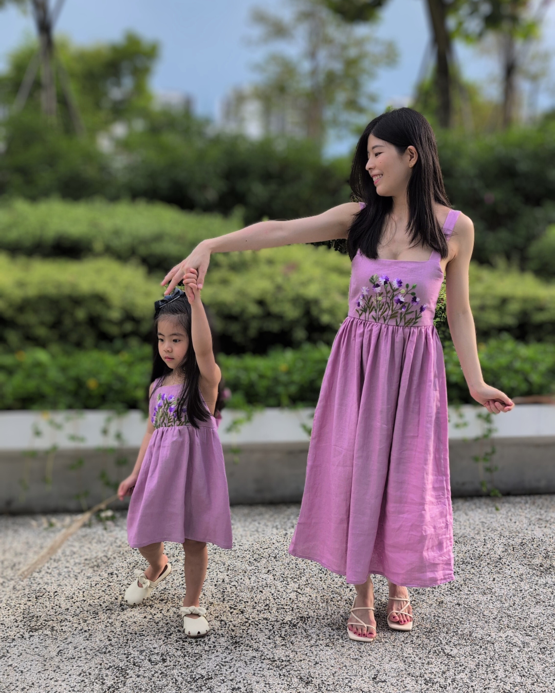 Lavender Bloom is the perfect dress for you and your little one when you want to dress simple and lovely. Adorned with sweet lavender embroidery and a stylish back, this dress offers comfort and breathability for outdoor activities and special occasions, ideal for adding a touch of charm to you and your child's summer wardrobe.