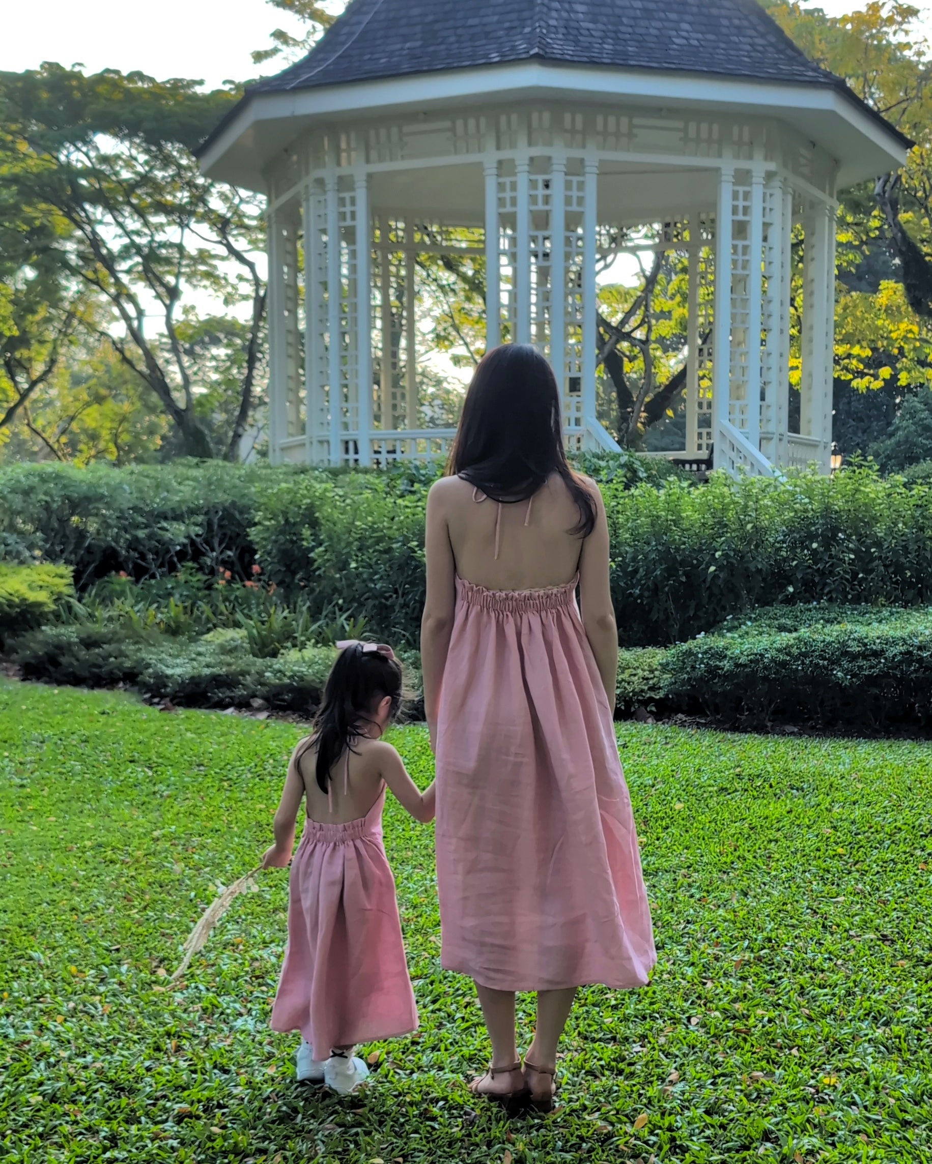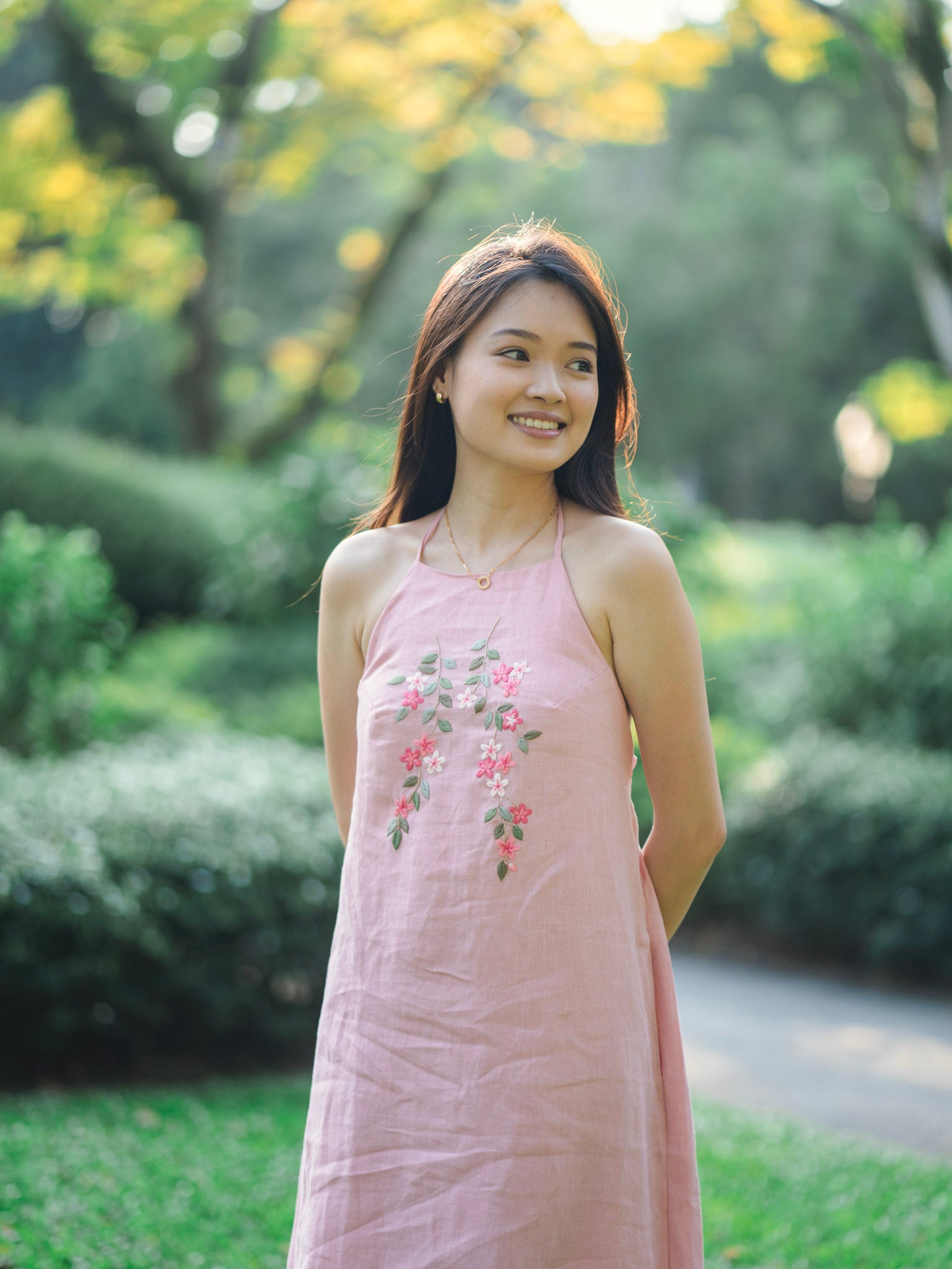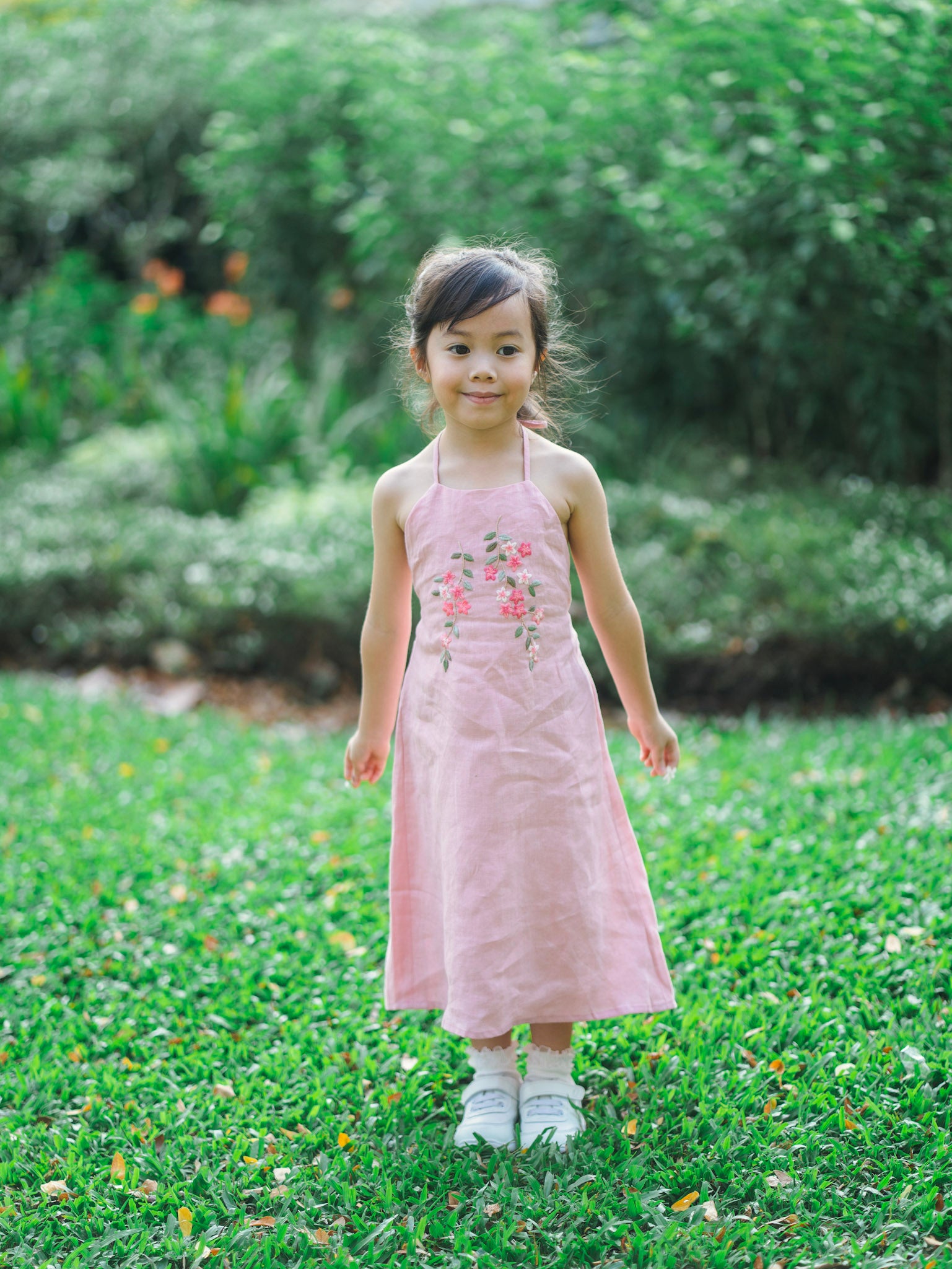 Sweet and sun-ready, the Pink Blossom Halter Dress is made for summer play and picture-perfect days. Crafted from 100% pure linen, it features a soft halter neckline, hand-smocked bodice, and gentle floral embroidery. Light, breathable, and beautifully detailed — it’s a standout piece for birthdays, holidays, or twinning with mum.