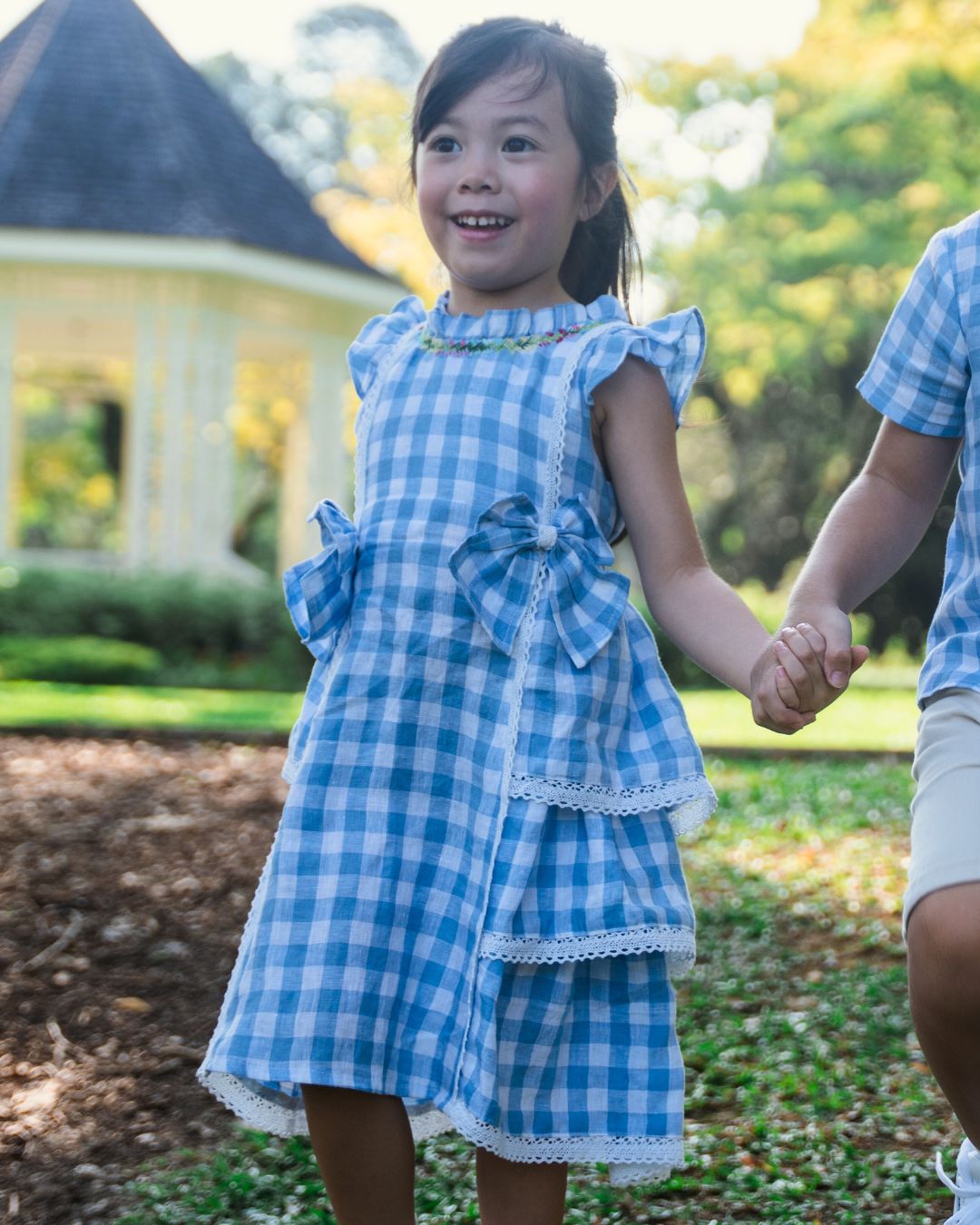 Delightfully classic with a royal twist, the Princess Plaid Dress is made for twirls, tea parties, and little everyday adventures. Crafted from 100% pure linen, this blue gingham dress features ruffled cap sleeves, side bows at the waist, and tiered accents that add a princess-like flair. The structured yet breathable design ensures all-day comfort for active little ones while keeping them picture-perfect for any special moment.