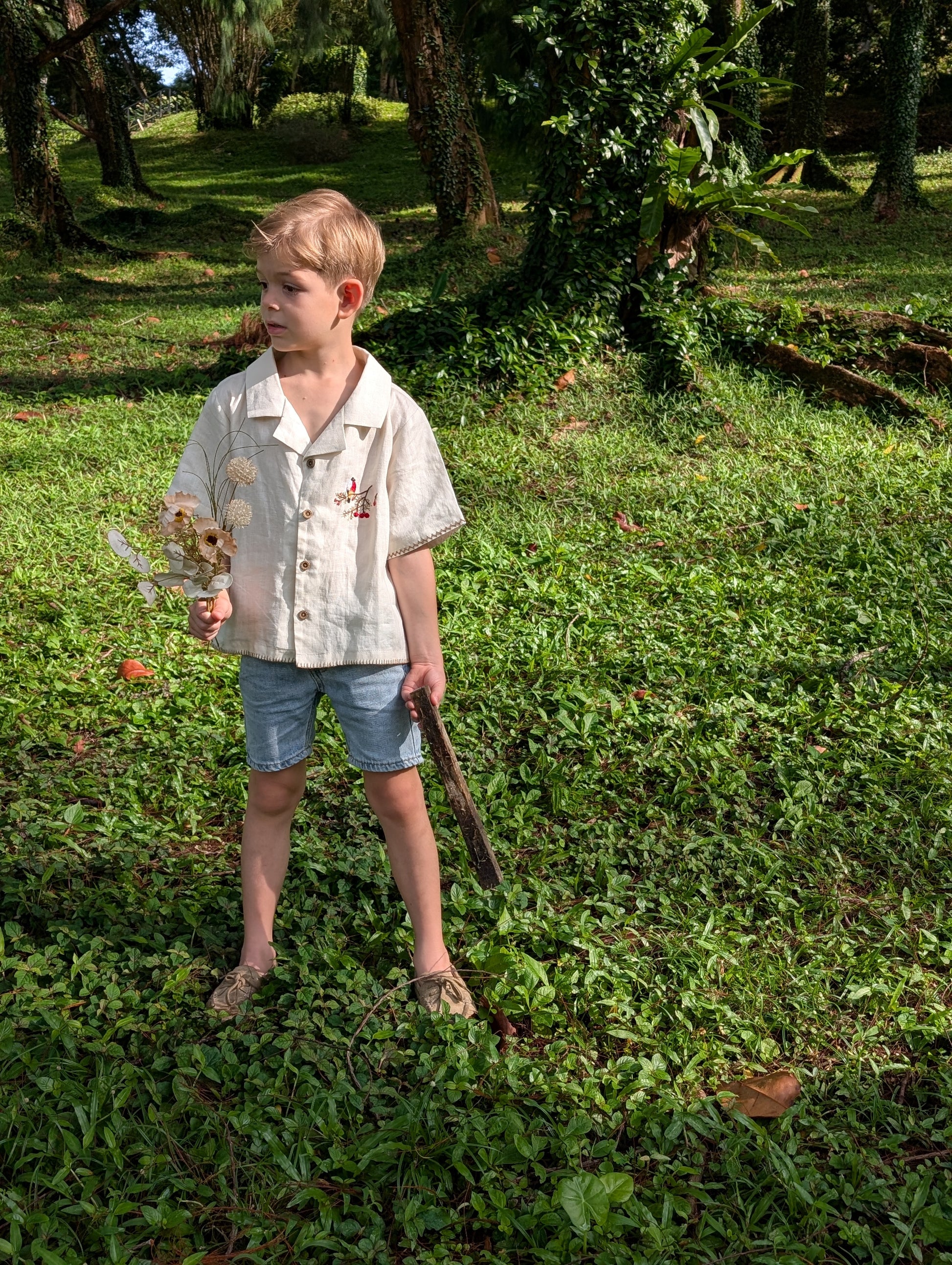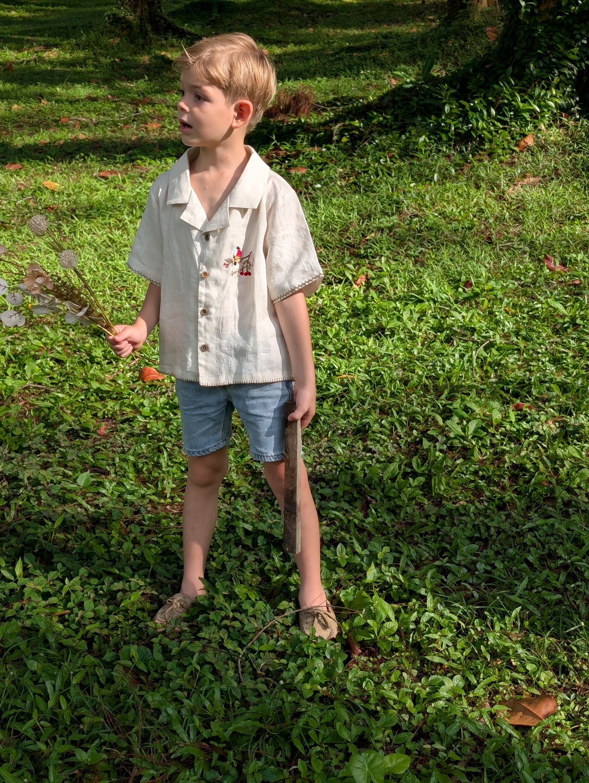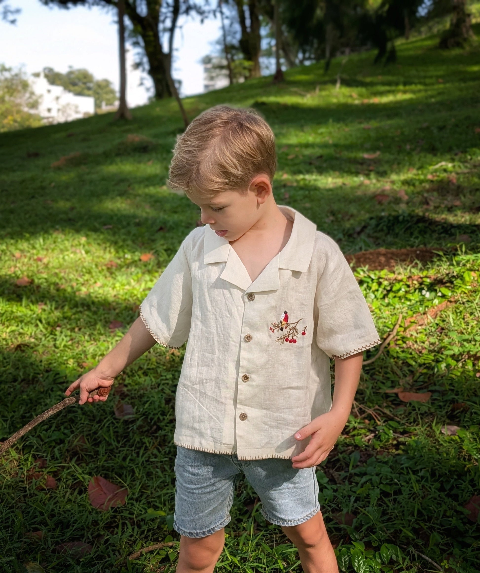 Our Raven Stories shirt features an intricately embroidered raven perched gracefully on its branch, bringing out a sophisticated feel and a touch of wonder to your little gentleman's wardrobe. A simple and cool shirt perfect for any casual outings.